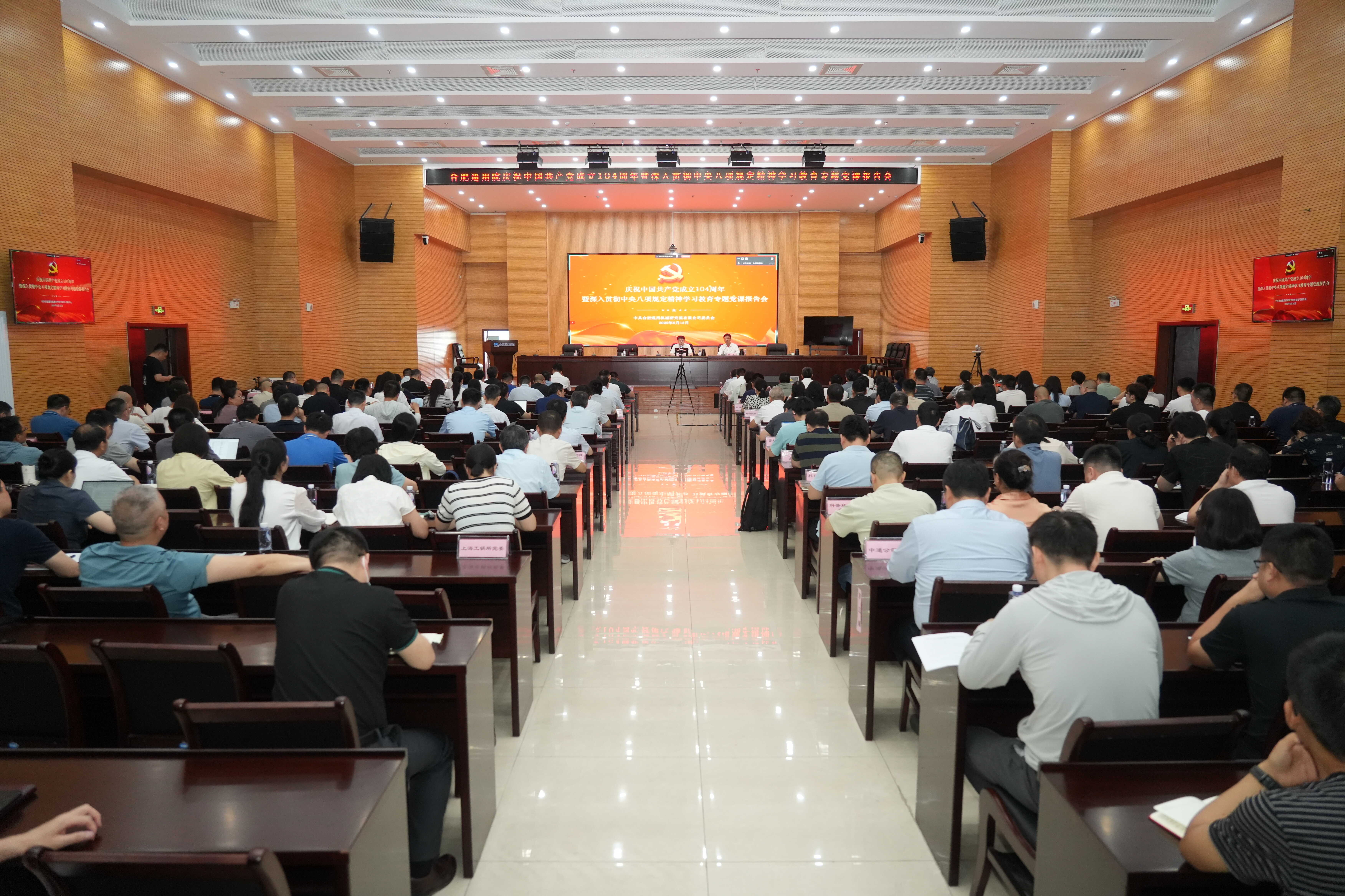 為從嚴(yán)從實推進深入貫徹中央八項規(guī)定精神學(xué)習(xí)教育,6月18日,院黨委根據(jù)學(xué)習(xí)教育工作部署和我院實際,在中國共產(chǎn)黨成立104周年之際,召開了慶祝中國共產(chǎn)黨成立104周年暨深入貫徹中央八項規(guī)定精神學(xué)習(xí)教育專題黨課報告會。黨委書記、董事長范志超作專題黨課報告,紀(jì)委書記周斌主持會議。院黨委行政領(lǐng)導(dǎo)班子成員、黨員代表、部門助理及以上干部、支部書記及支委、專兼職黨務(wù)人員、新轉(zhuǎn)正的黨員及預(yù)備黨員等220余人參加會議。中通公司、上海工鍋所、北京科正平以視頻形式參會。